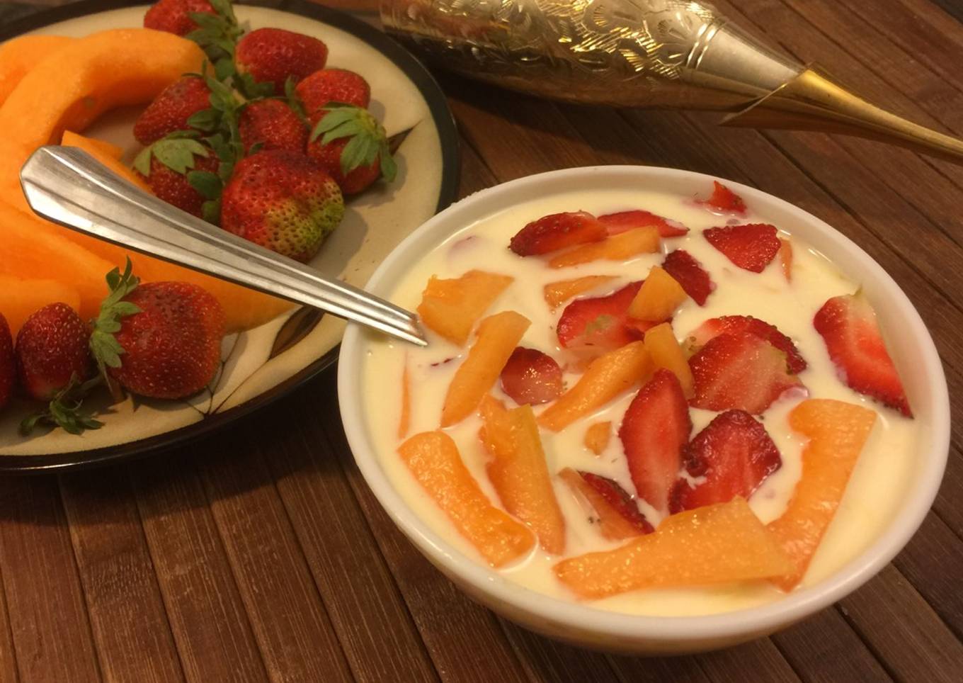 - Cut fruits, jelly for garnish