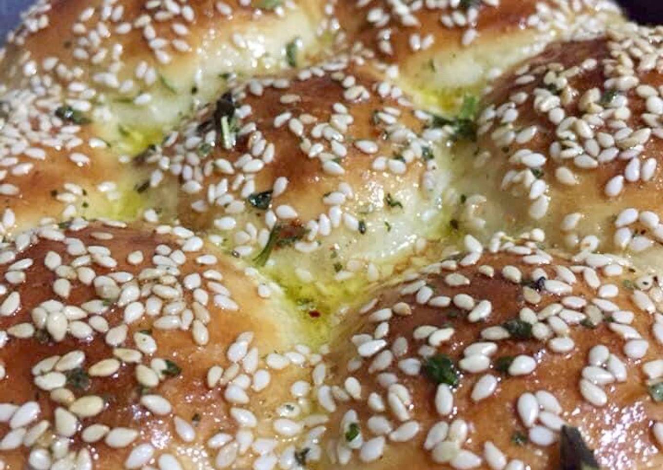 Make buns fill cheese rest for 15 minutes brush with egg sprinkle sesame seeds and bake in preheated oven for 15 to 20 minutes 180 degree. - Once the buns are baked heat 2 tbsp butter add minced garlic, mix herbs pinch of salt and brush the buns with this mixture and cover for 5 minutes to make buns soft.