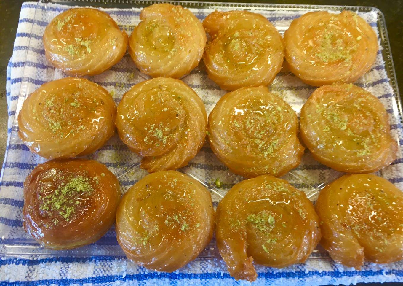 - When serving, pour some extra syrup over the top. Garnish the dessert with the ground pistachio Keep leftovers refrigerated for up to 3 days.