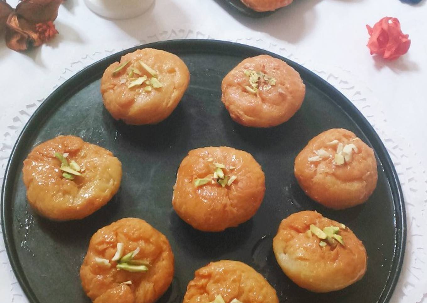 - In the same way fry the remaining balushahi and soak them in syrup.